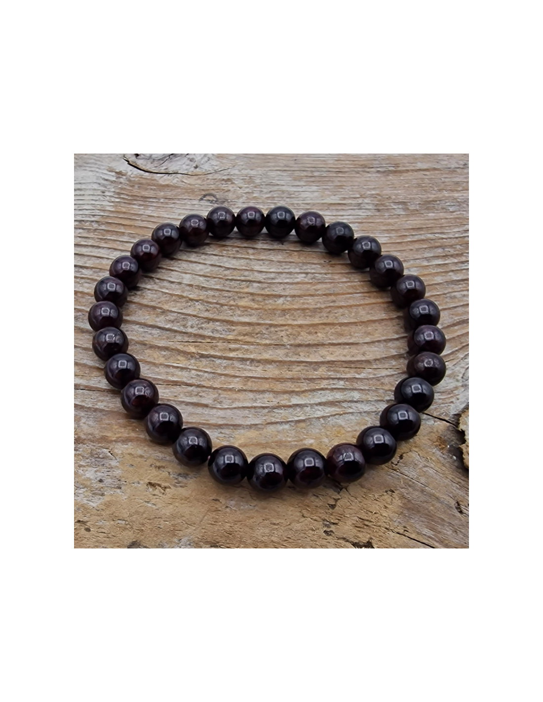 Granat Armband in Naturfarbe mit ca.6mm Perlen. Das Armband ist mit Gummiband gefertigt und benötigt daher keinen Verschluss und keine "dritte" Hand um das Armband anzulegen. ( Die Abbildung zeigt ein Musterarmband. Es kann zu fototechnischen Farbabweichungen kommen. Einschlüsse im Stein sind ein Zeichen der Natur) VPE = 1 Armband