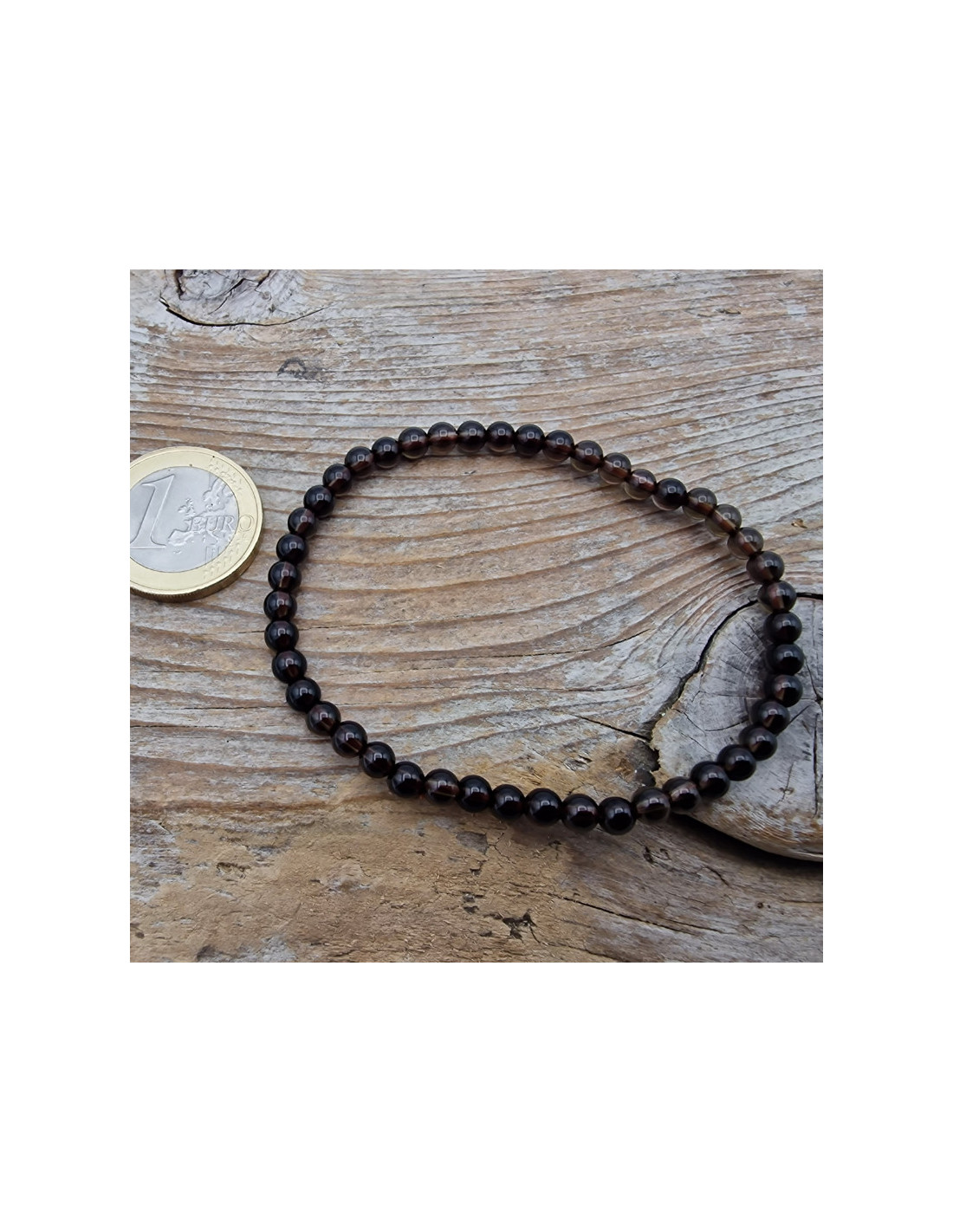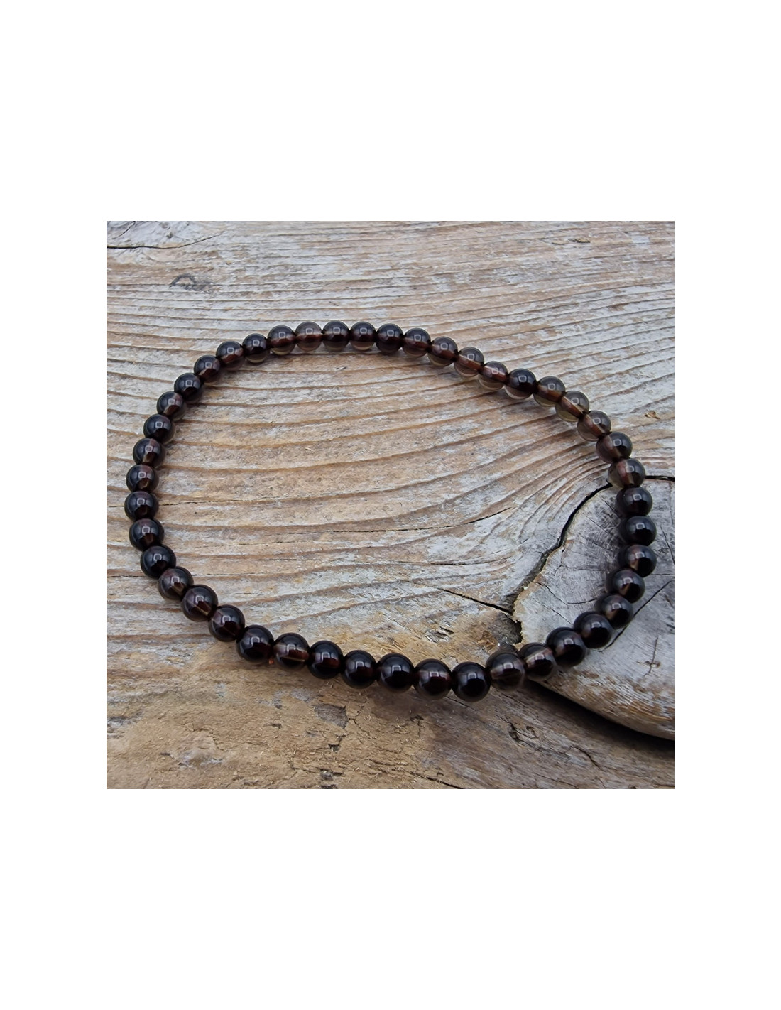 Schönes Rauchquarz Armband. Der Steindurchmesser beträgt ca.4mm. Das Armband ist mit Gummiband gefertigt und benötigt daher keinen Verschluss und keine "dritte" Hand um das Armband anzulegen. ( Die Abbildung zeigt ein Musterarmband. Es kann zu fototechnischen Farbabweichungen kommen. Einschlüsse im Stein sind ein Zeichen der Natur) VPE = 1 Stk