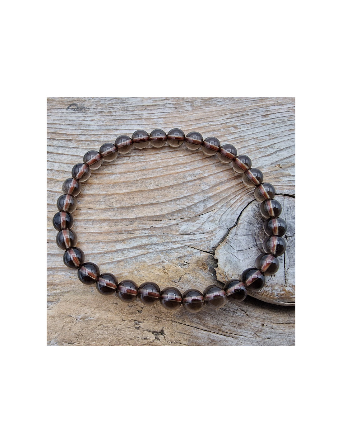 Schönes Rauchquarz Armband. Der Steindurchmesser beträgt ca.6mm. Das Armband ist mit Gummiband gefertigt und benötigt daher keinen Verschluss und keine "dritte" Hand um das Armband anzulegen. ( Die Abbildung zeigt ein Musterarmband. Es kann zu fototechnischen Farbabweichungen kommen. Einschlüsse im Stein sind ein Zeichen der Natur) VPE = 1 Stk