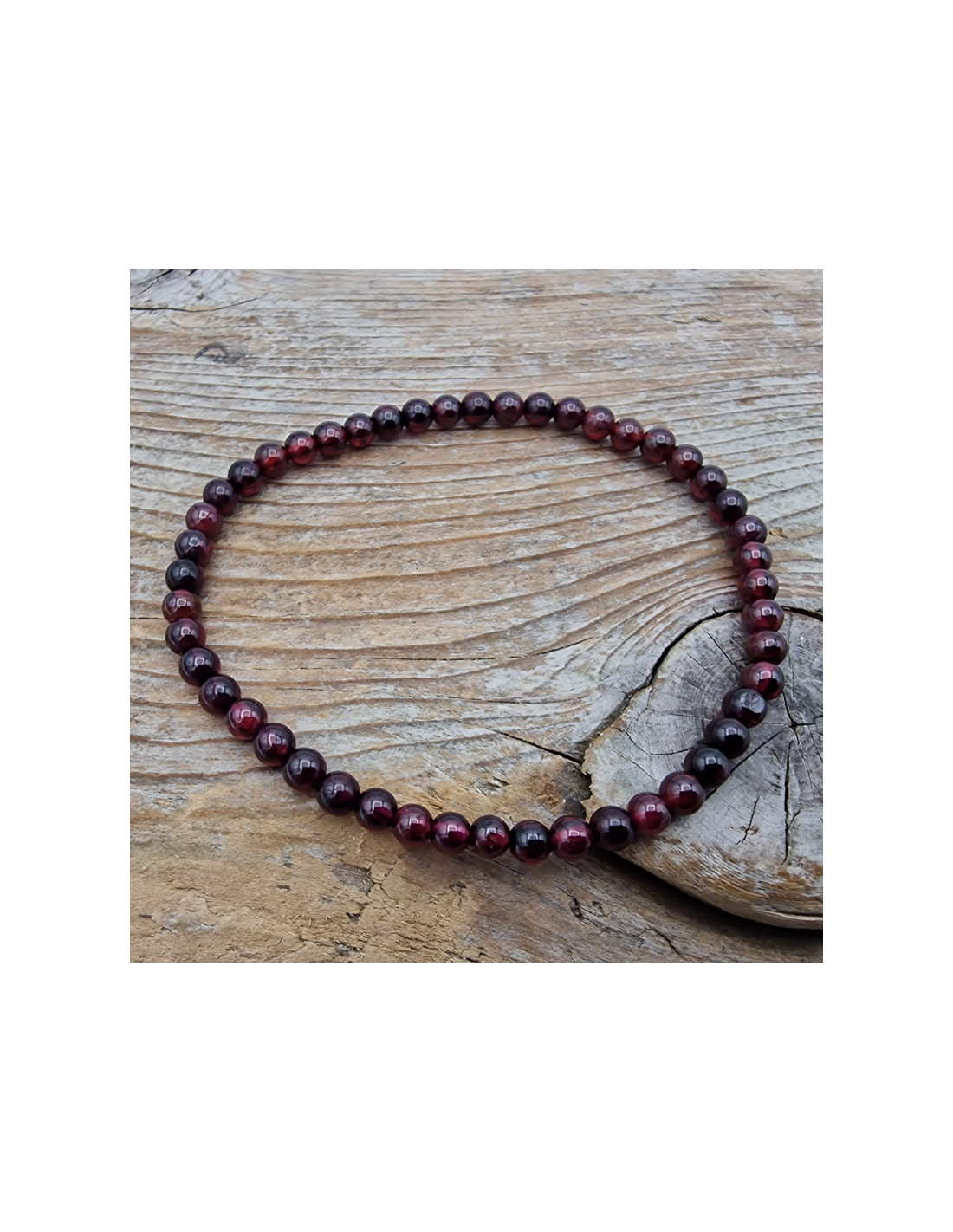 Granat Armband in Naturfarbe mit ca.4mm Perlen. Das Armband ist mit Gummiband gefertigt und benötigt daher keinen Verschluss und keine "dritte" Hand um das Armband anzulegen. ( Die Abbildung zeigt ein Musterarmband. Es kann zu fototechnischen Farbabweichungen kommen. Einschlüsse im Stein sind ein Zeichen der Natur) VPE = 1 Armband