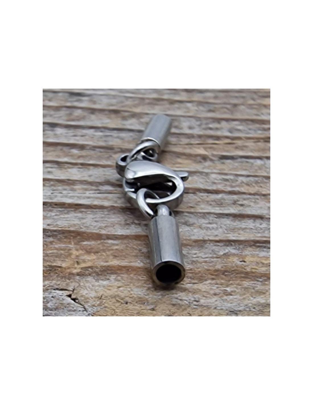 Bandschliesse aus Edelstahl. Die Schliesse ist hochglanzpoliert ausgeführt. Keine Oberflächenprobleme da keine Beschichtung vorhanden ist. Kein Anlaufen und kein Abblättern möglich. Die Schliesse ist zum Einkleben von Bändern mit 1.5mm Durchmesser. Gesamtlänge der Schliesse ca.28mm. Natürlich ist die Schliesse nickelfrei. VPE = 1 Stück