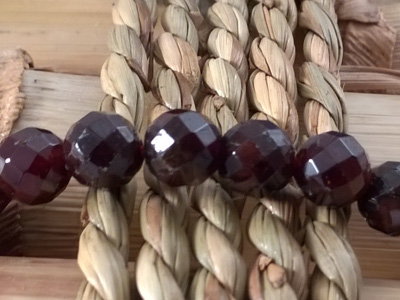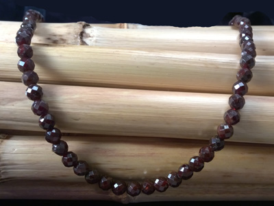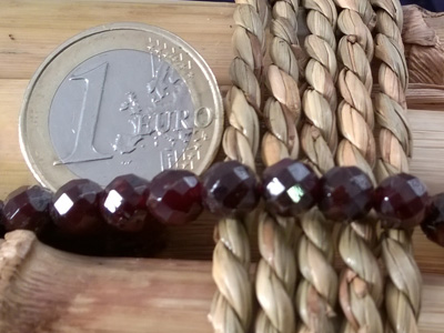 Schöne Granatkette. Die Steine haben einen Durchmesser von ca.6mm, sind facettiert und einzeln am Strang aufgefädelt. Die Kette hat noch keinen Verschluss. Der Strang ist ca. 38cm lang. (Durch die Fotos kann es zu leichten farblichen Abweichungen kommen. Einschlüsse im Stein sind ein Zeichen der Natur).