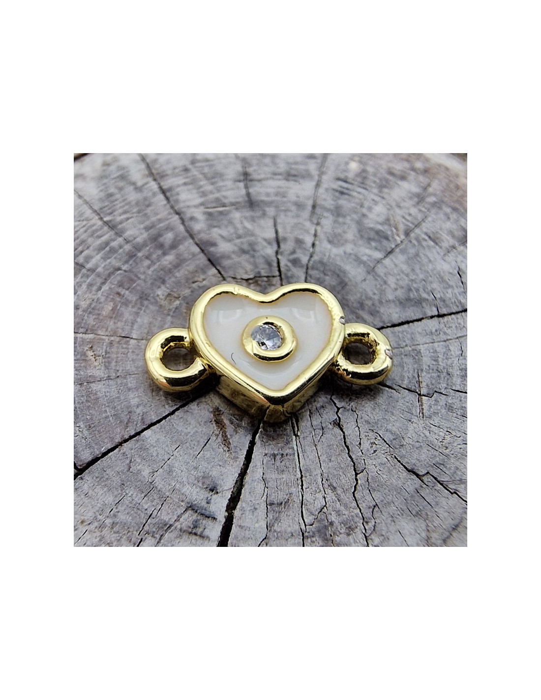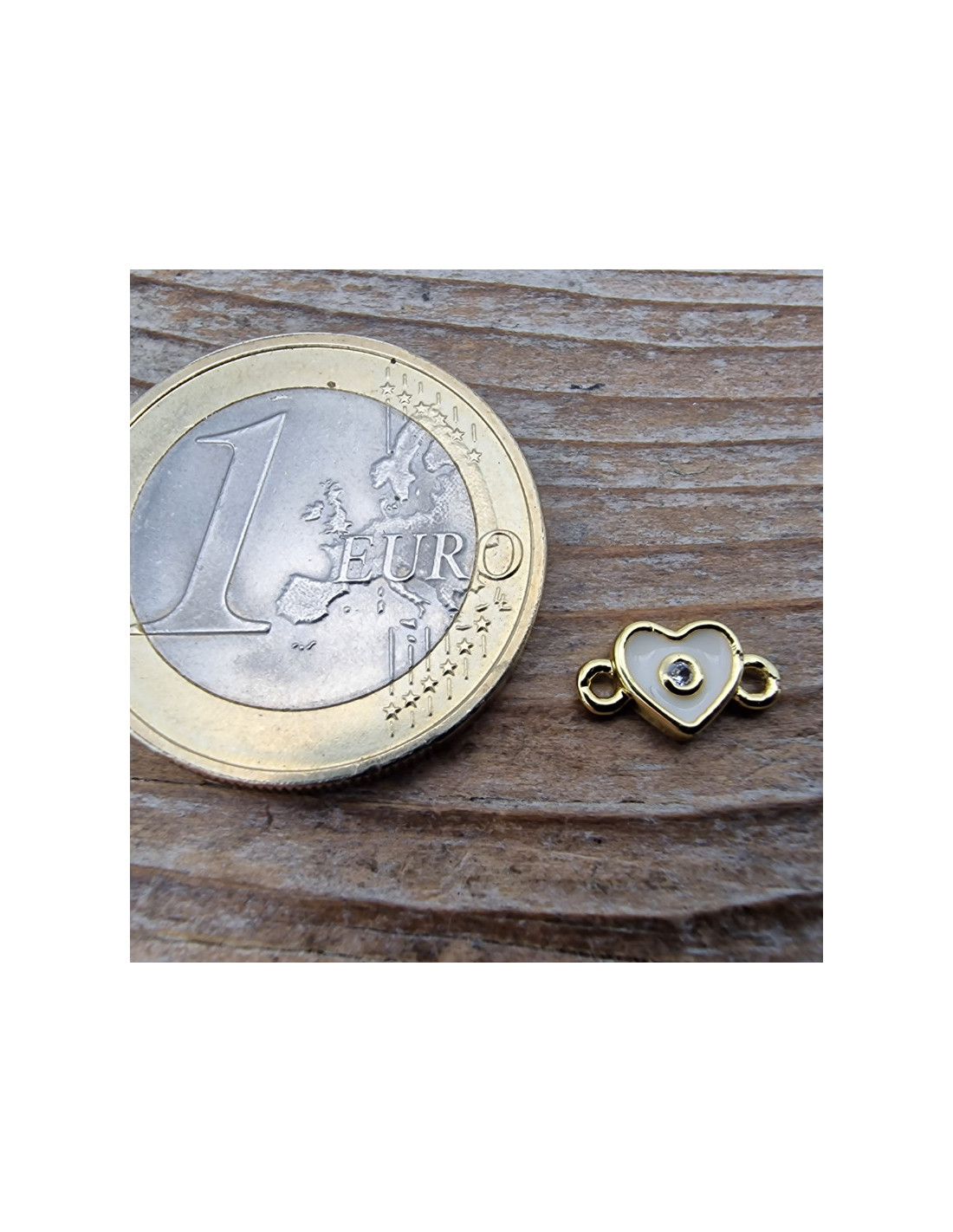 Glitzernder Verbinder in Herzform aus Messing goldfarben mit Strassstein. Der Breite beträgt ca.5mm. Die Gesamtlänge ca.9mm. Der Preis ist pro Stück Zwischenteil angegeben.