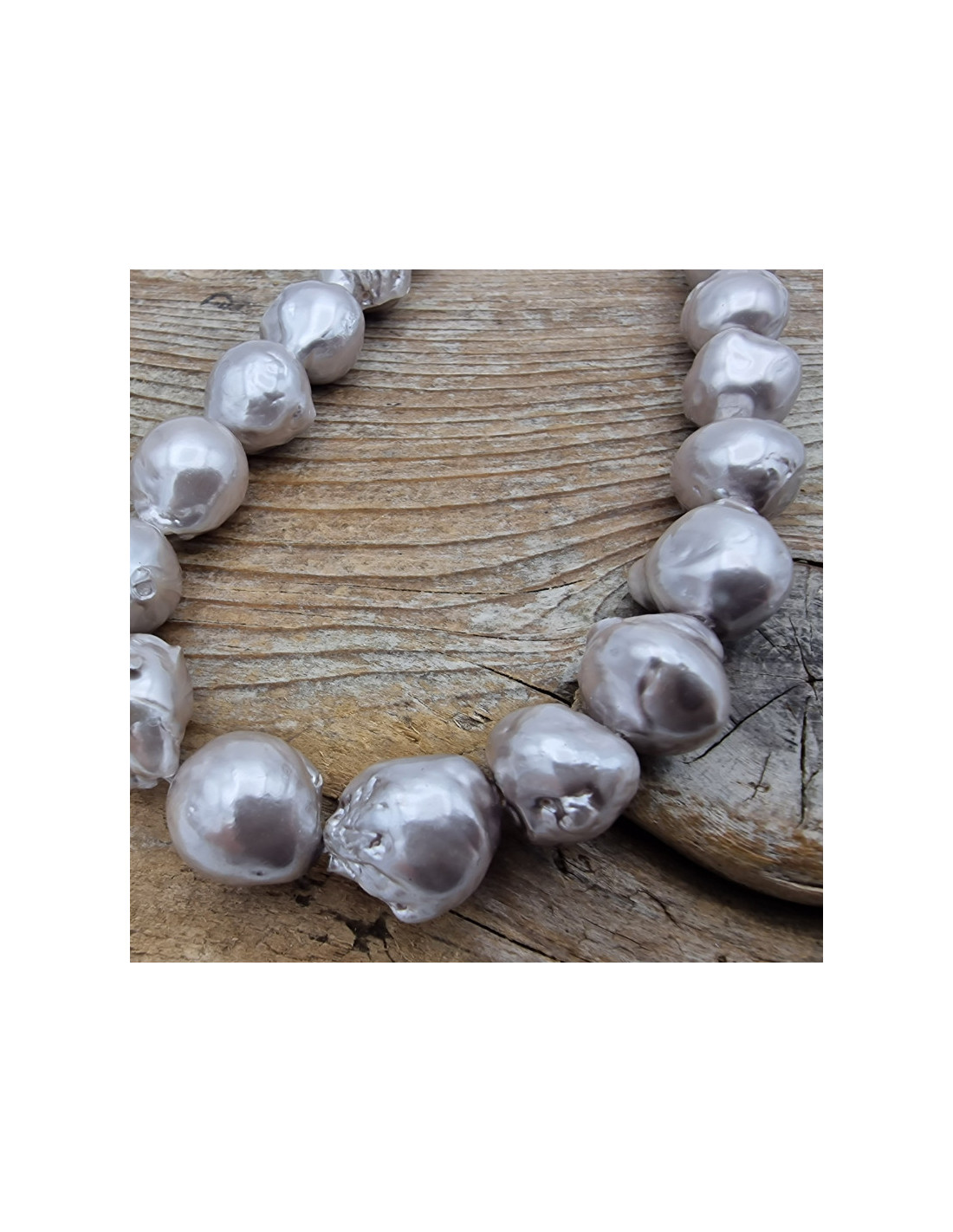 Perlenstrang 10-12mm/38cm, Barock, Grau