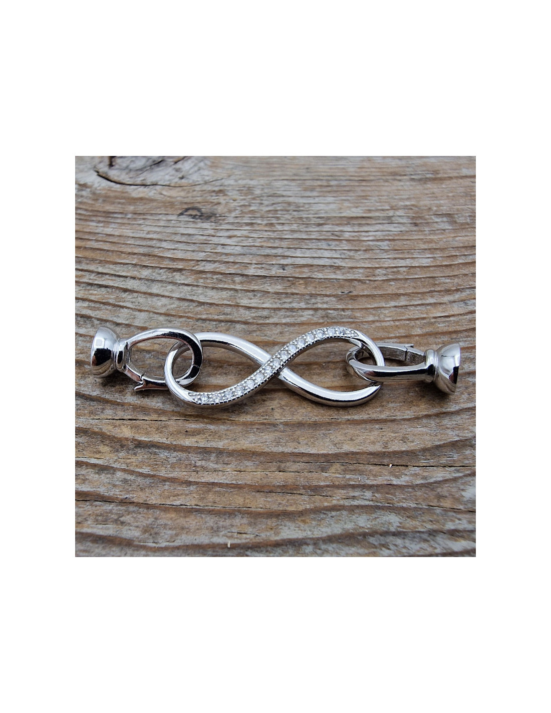 Ein Designerstück. Sehr schöne, perfekt verarbeitete Kettenschliesse aus Silber rhodiniert und mit Strasssteinen besetzt. Die Schliesse ist hochglanzpoliert ausgeführt. Die Gesamtlänge der Schließe beträgt ca.47mm. Natürlich ist die Schliesse nickelfrei.