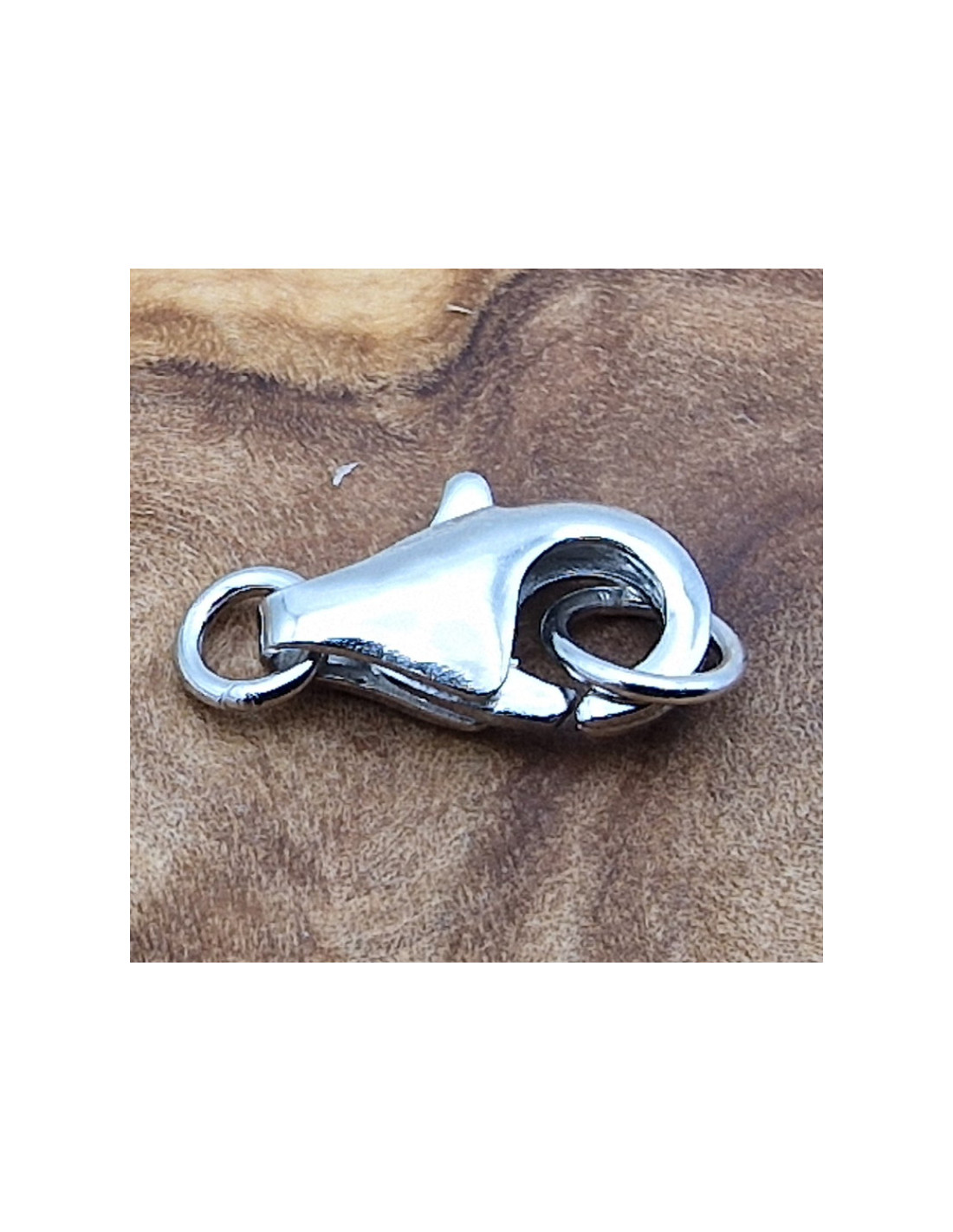 Sehr schöne, perfekt verarbeitete Kettenschliesse aus Silber rhodiniert. Die Rhodiumschicht ist die beste Oberflächenvergütung die es für Silber gibt. Die Schliesse ist hochglanzpoliert ausgeführt. Länge des Karabiners ist ca.11mm (ohne Gegenring gemessen). Die Ringe sind geschlossen ausgeführt. Natürlich ist die Schliesse nickelfrei.