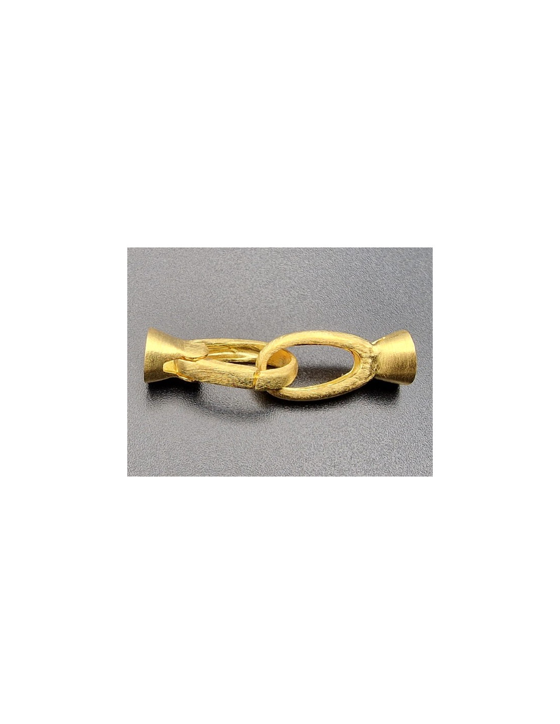 Sehr schöne, perfekt verarbeitete Kettenschliesse aus Silber vergoldet mit matter Oberfläche. Gesamtlänge ca.32mm. Außendurchmesser der Endkappen ca.6mm. Natürlich ist die Schliesse nickelfrei.