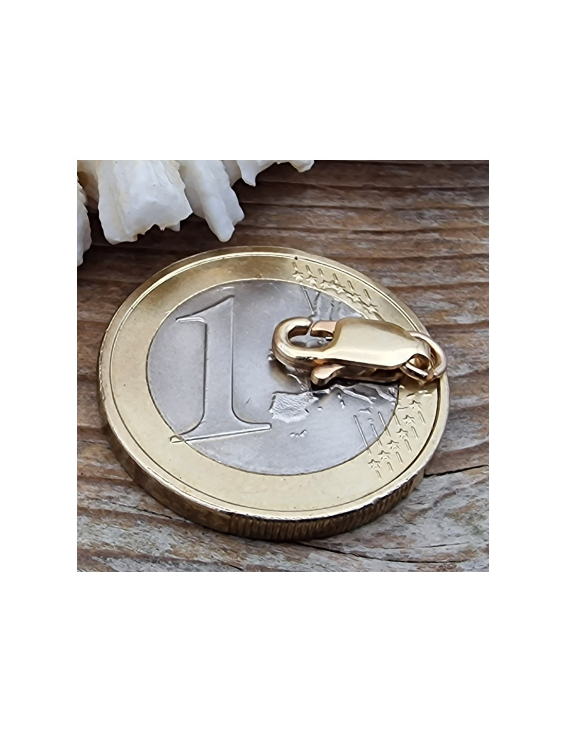 Sehr schöne 10mm Karabiner-Kettenschliesse aus Goldfilled. Goldfilled (Englisch für gefülltes Gold) bezeichnet ein Verfahren, bei dem eine äußere Schicht echtes (= massives) Gold mit einem Metallkern verbunden wird. Das Gold wird in einem speziellen Verfahren aufgewalzt und bei Schweißtemperatur dauerhaft mit dem Trägermetall verbunden. Die Gefahr des Abblätterns besteht nicht. Die Goldschicht ist viel dicker als bei einer Vergoldung (galvanische Elektroplattierung) und somit um vieles haltbarer. Natürlich ist die Schliesse nickelfrei.