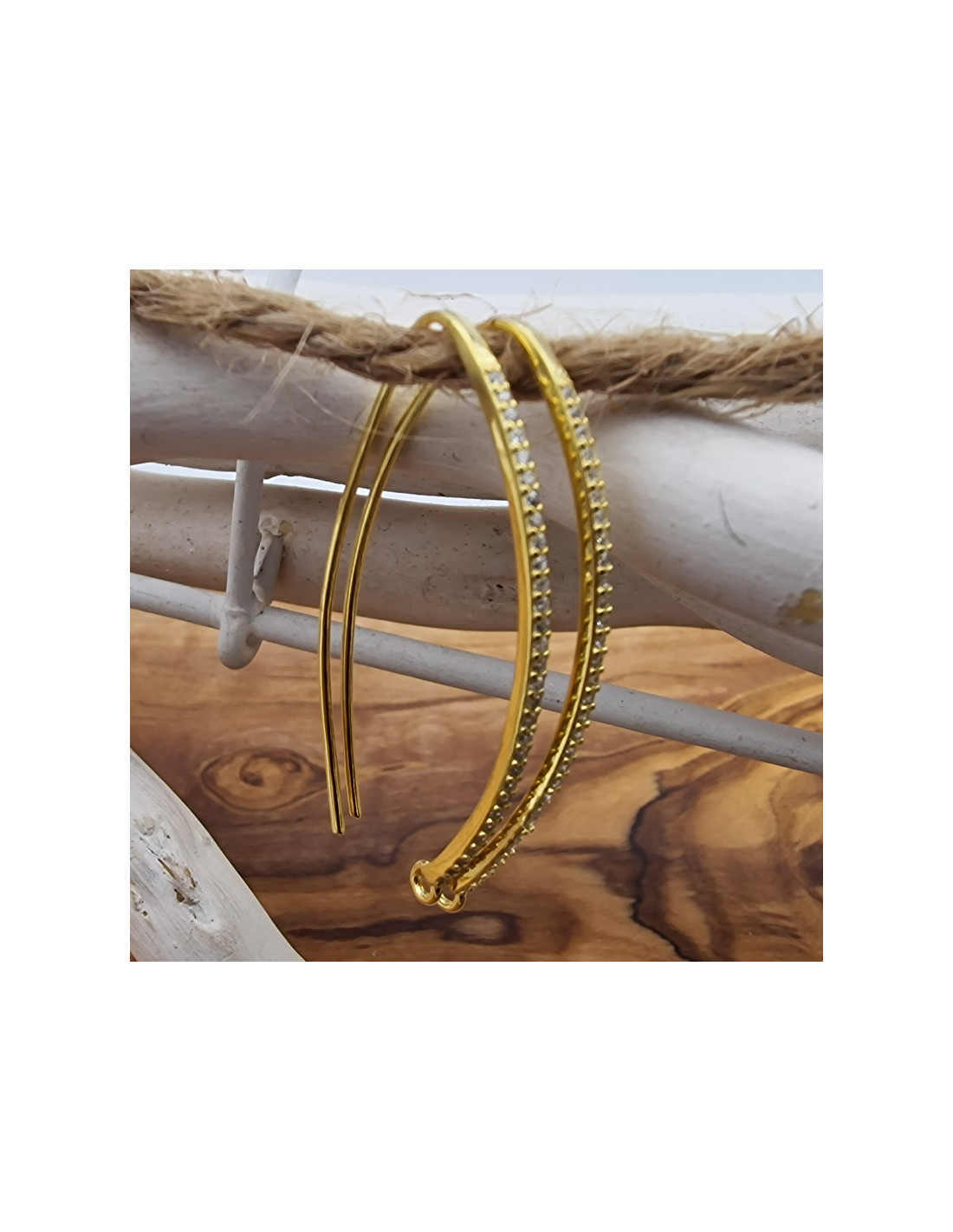 2 Stk. Ohrhaken 36mm, 925 Silber vergoldet, Strass