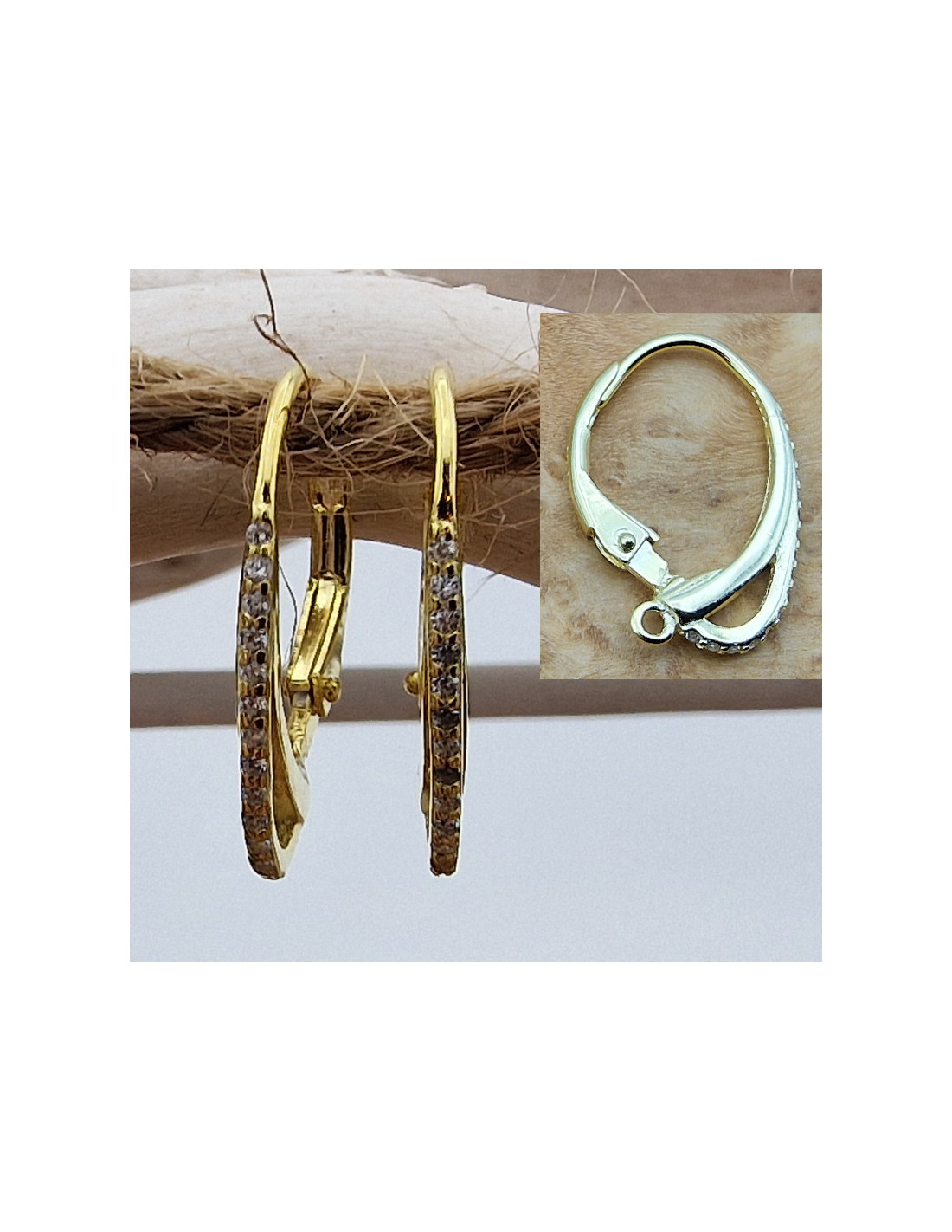 2 Stk. Brisur 12x17mm, 925 Silber vergoldet, Strass