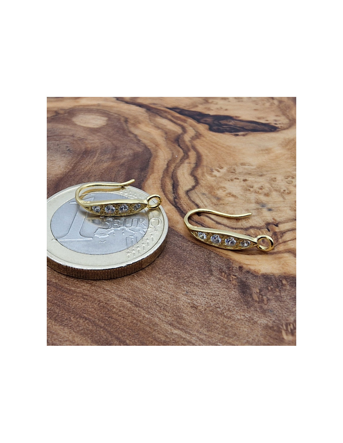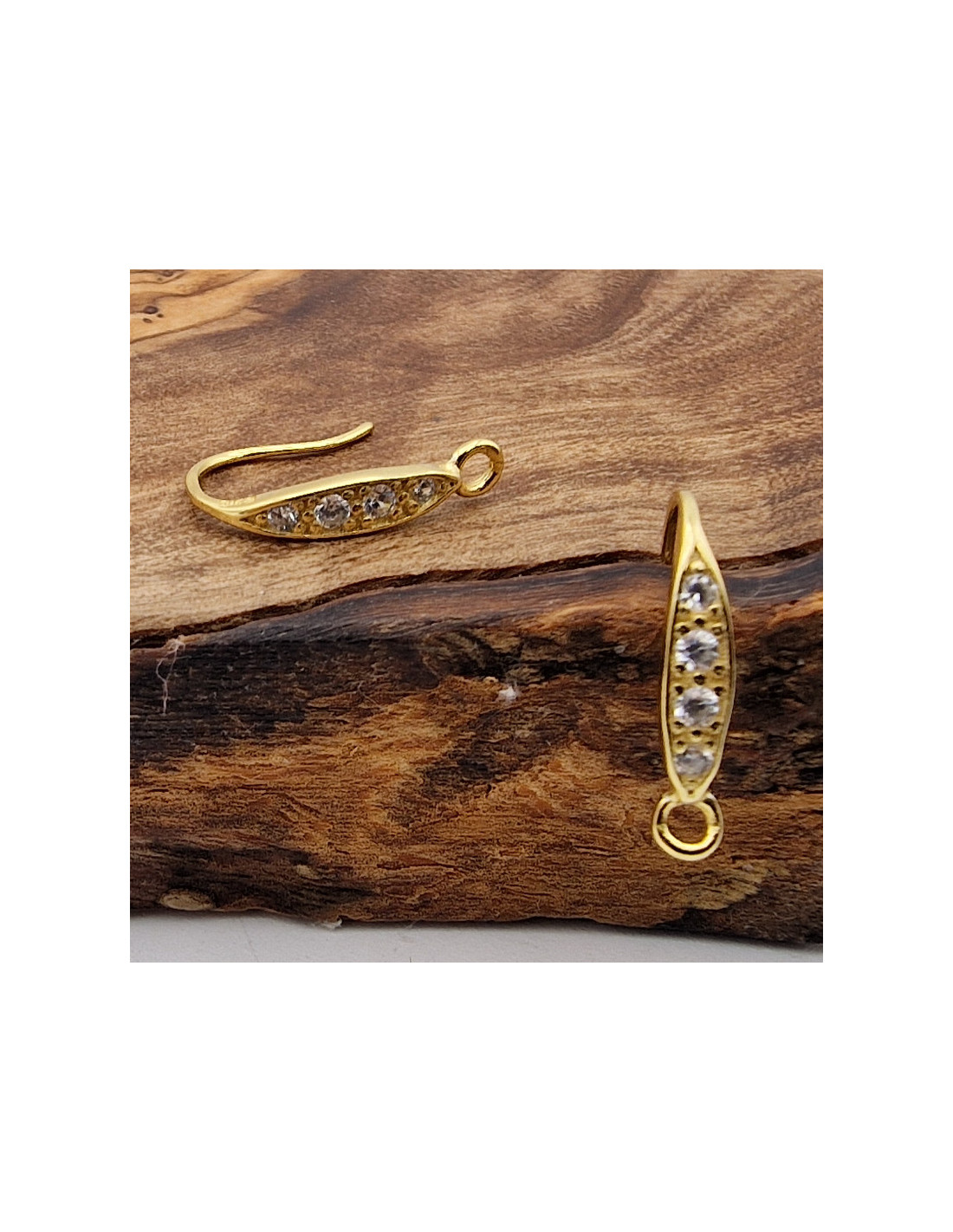 2 Stk. Ohrhaken 15mm, 925 Silber vergoldet, Strass