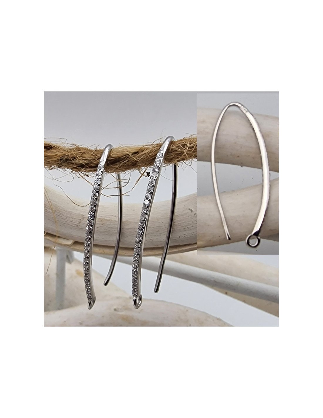 2 Stk. Ohrhaken 29mm, 925 Silber rhodiniert, Strass
