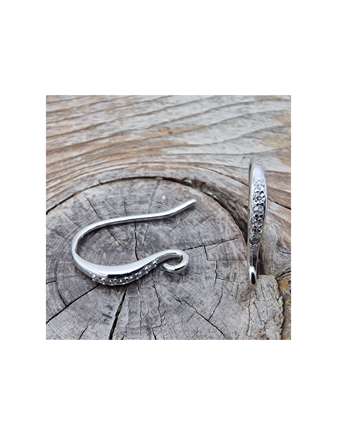 2 Stück (1 Paar) Packung Ohrhaken aus Silber rhodiniert. Länge des Ohrhakens ist ca.13mm (kürzere Seite). Die Sichtfläche dieser Ohrhaken ist mit vielen facettierten Strasssteinen besetzt. Natürlich sind diese Ohrhaken nickelfrei.