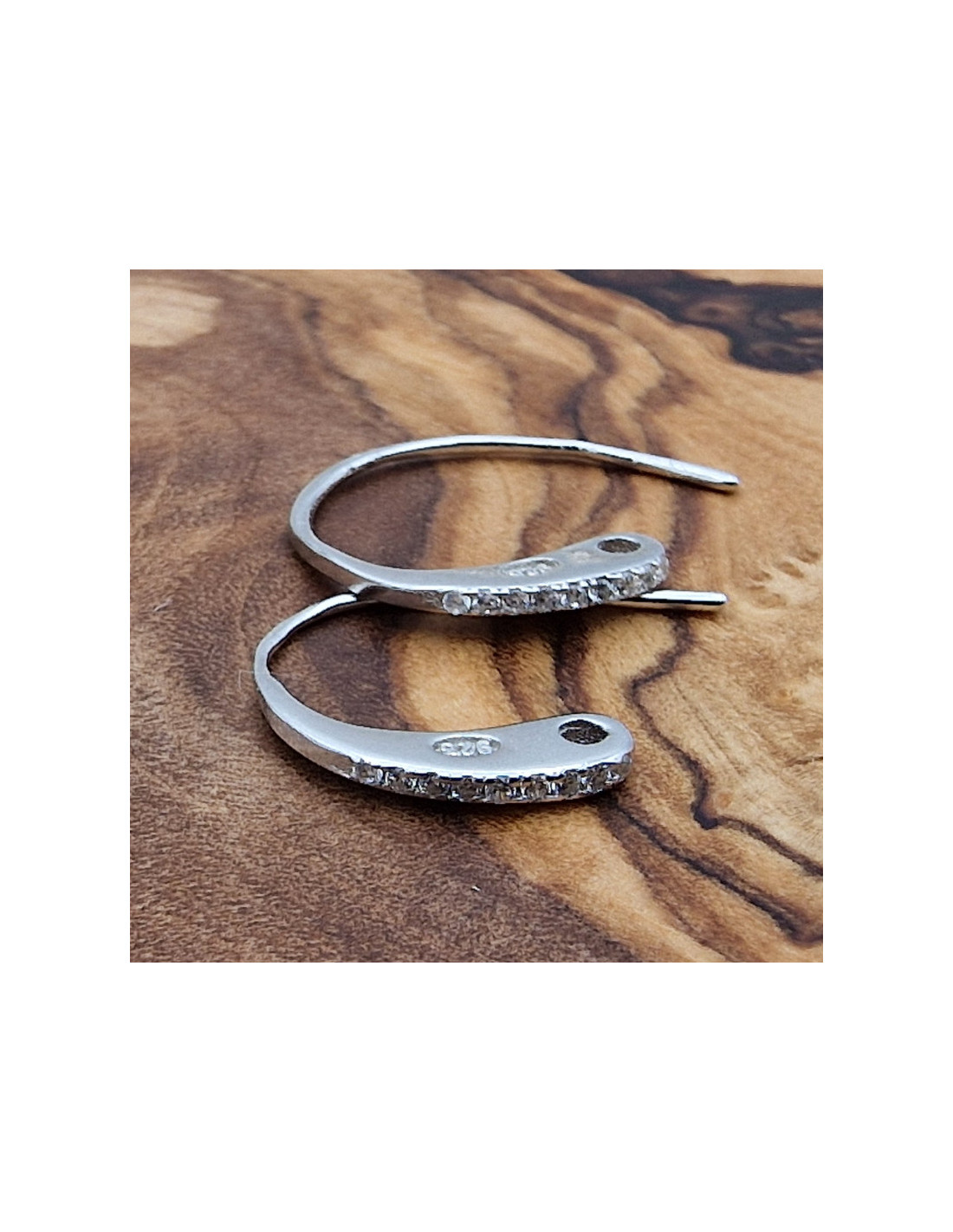 2 Stk. Ohrhaken 14mm, 925 Silber rhodiniert, Strass