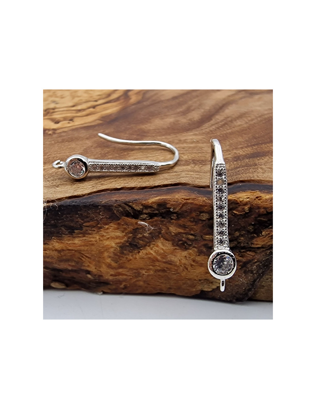 2 Stück (1 Paar) Packung Ohrhaken aus Silber rhodiniert. Länge des Ohrhakens ca.22mm. Die Sichtfläche dieser Ohrhaken ist mit vielen facettierten Strasssteinen besetzt. Natürlich sind diese Ohrhaken nickelfrei.