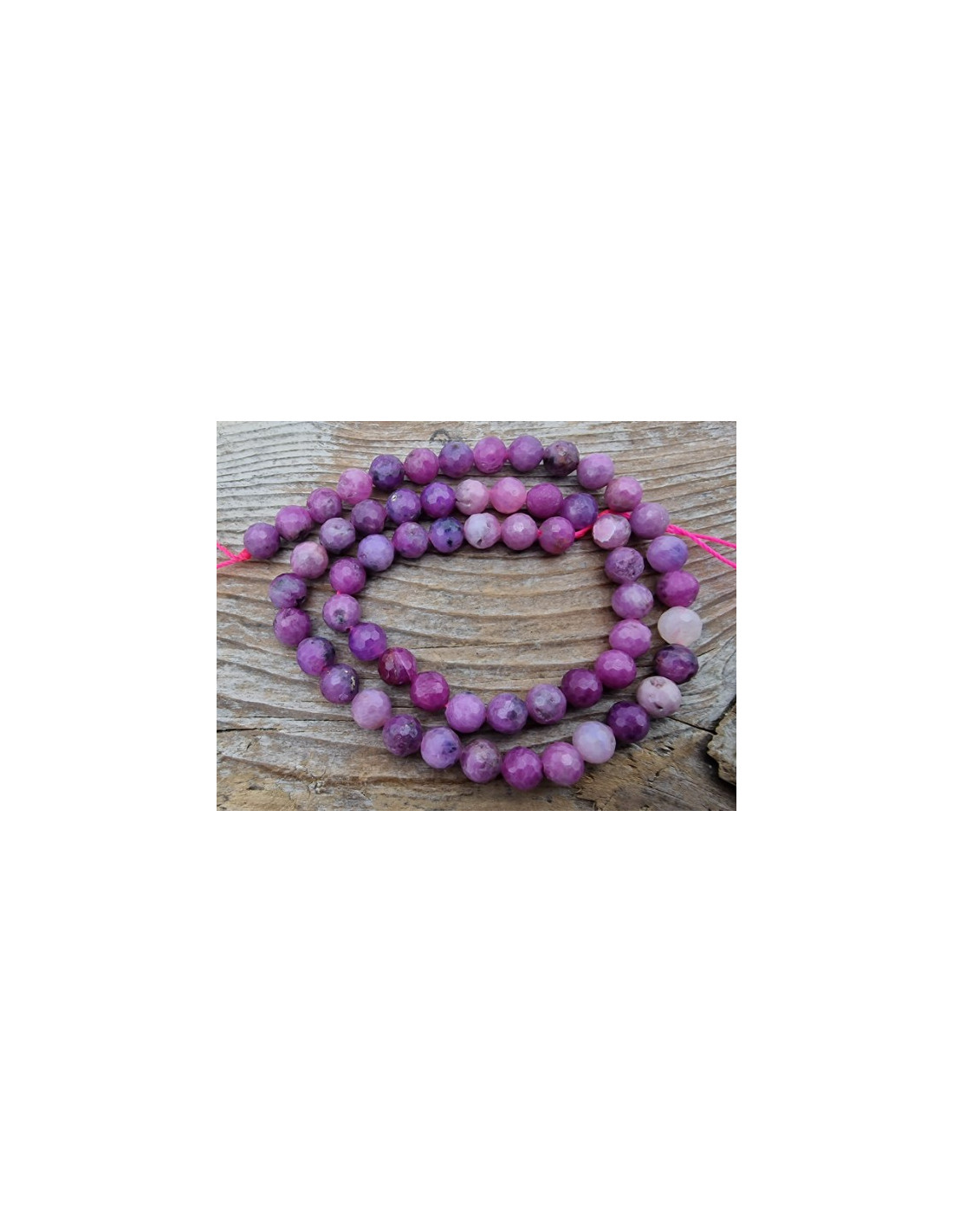Wunderbarer, schöner echter Rubinstrang. Die facettiert geschliffenen Edelsteine haben einen Durchmesser von ca.6mm und sind einzeln am Strang aufgefädelt. Die Kette hat noch keinen Verschluss. Der Strang ist ca.38cm lang. (Durch die Musterfotos kann es zu leichten farblichen Abweichungen kommen. Einschlüsse und Sprünge im Stein sind ein Zeichen der Natur). VPE = 1 Strang