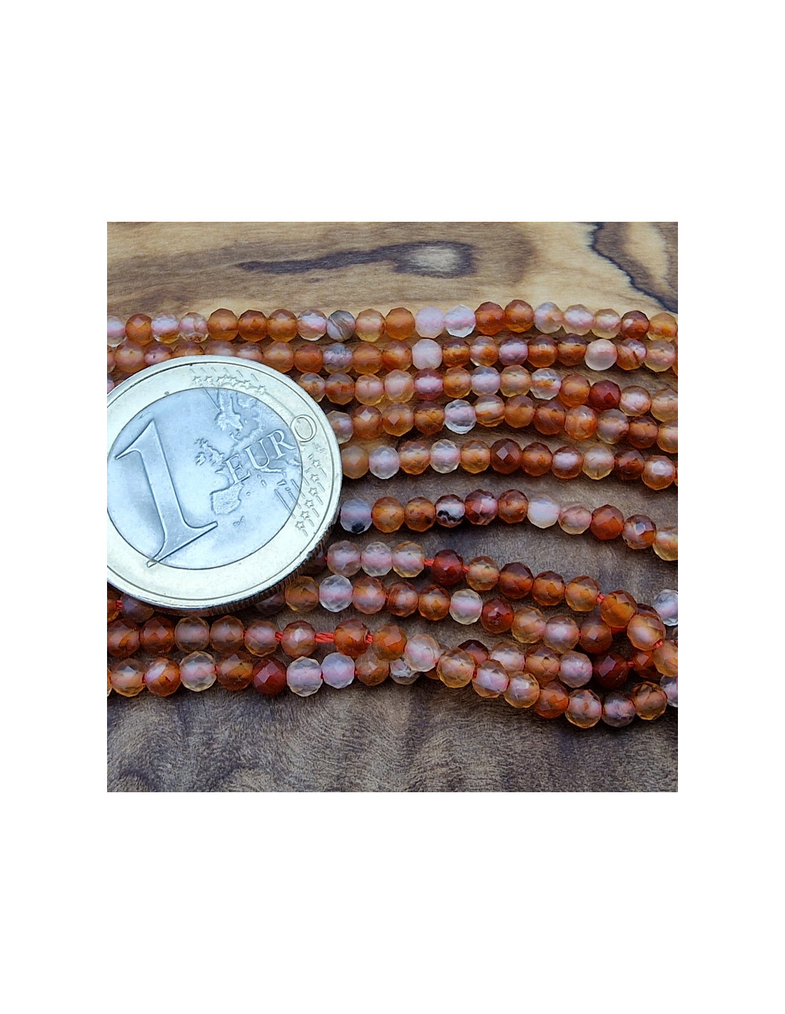Der Carneol ist als facettierte Kugel ausgeführt und hat einen Durchmesser von ca.3mm und die Steine sind einzeln am Strang aufgefädelt. Die Kette hat noch keinen Verschluss. Der Strang ist ca. 38cm lang. (Durch die Musterfotos kann es zu leichten farblichen Abweichungen kommen. Einschlüsse im Stein sind ein Zeichen der Natur). VPE = 1 Strang