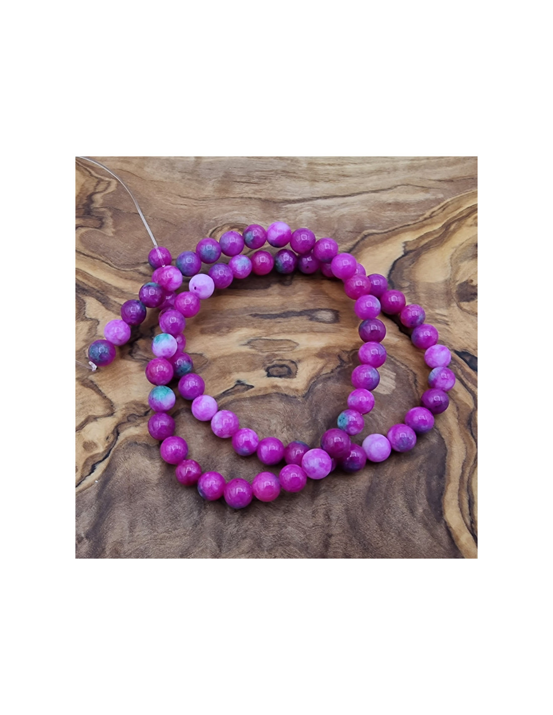 Schöner Achatstrang in schönem Rot mit grünen Flecken. Der Achat ist in diese Farbe eingefärbt. Die Steine sind als Kugeln mit 6mm Durchmesser geschliffen und einzeln am Strang aufgefädelt. Die Kette hat noch keinen Verschluss. Der Strang ist ca.38cm lang. (Durch die Musterfotos kann es zu leichten farblichen Abweichungen kommen. Einschlüsse im Stein sind ein Zeichen der Natur). VPE = 1 Strang