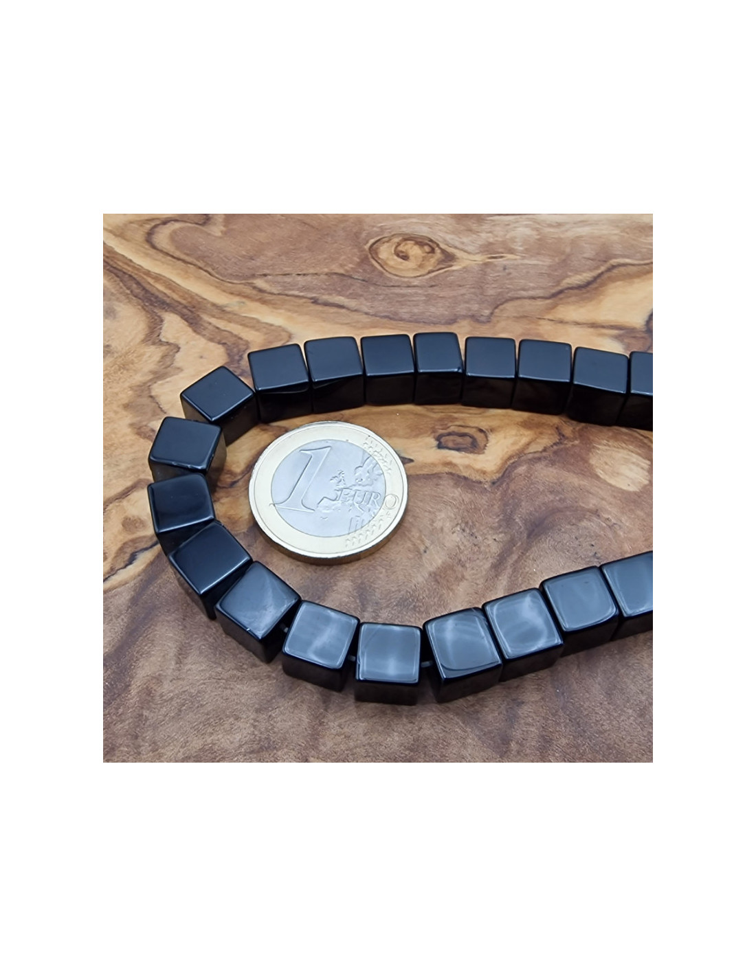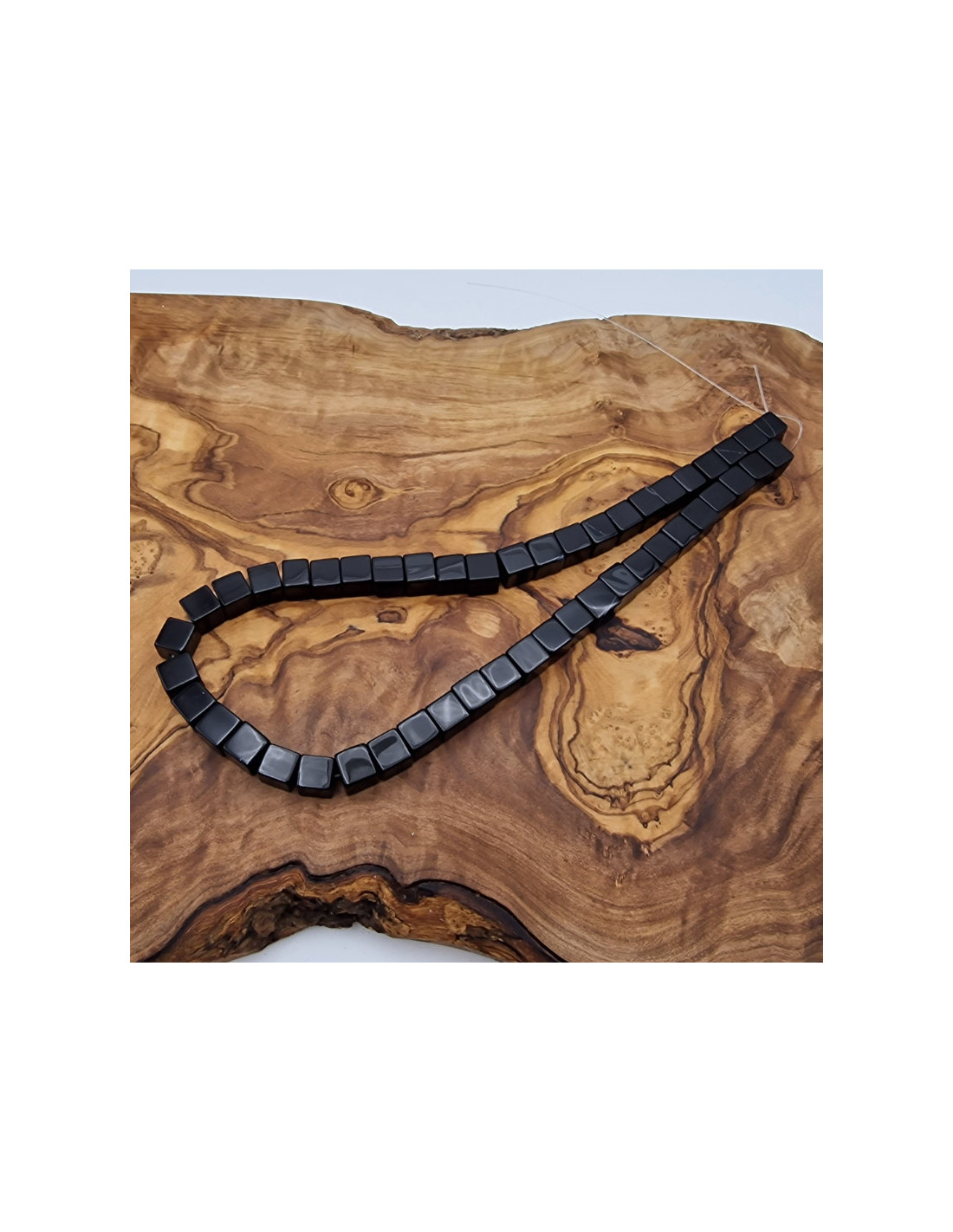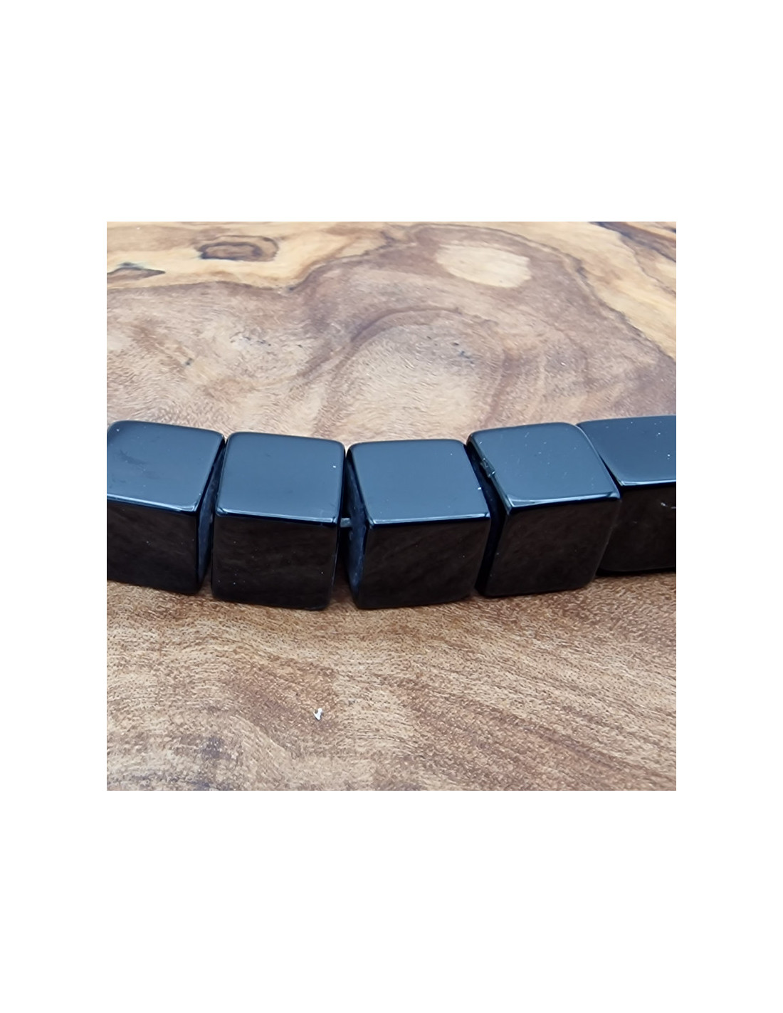 Schöne Onyxkette in tiefschwarz. Die Steine sind als Würfel mit 8mm Kantenlänge geschliffen und einzeln am Strang aufgefädelt. Die Kette hat noch keinen Verschluss. Der Strang ist ca. 40cm lang. (Durch die Musterfotos kann es zu leichten farblichen Abweichungen kommen. Einschlüsse im Stein sind ein Zeichen der Natur). VPE = 1 Strang