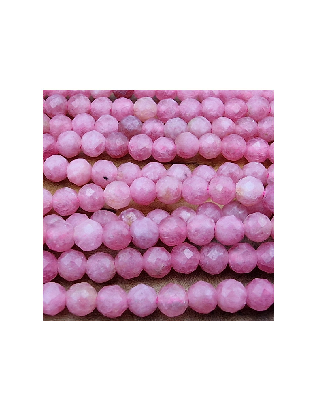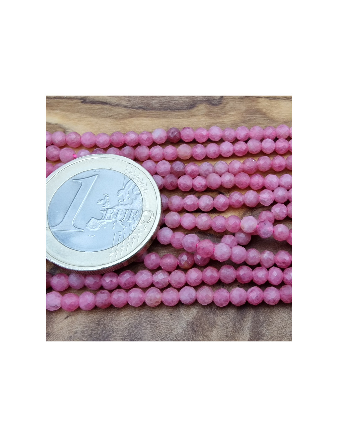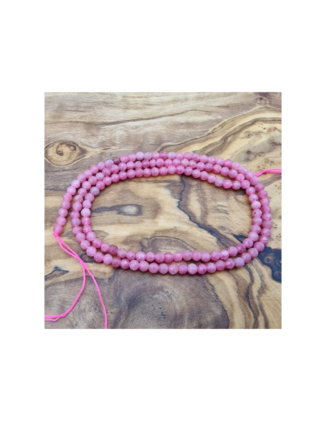 Schöner Rhodochrositstrang. Die Steine sind als facettierte Kugeln geschliffen und einzeln am Strang aufgefädelt. Die Kette hat noch keinen Verschluss. Der Strang ist ca. 38cm lang und die Kugeln haben einen Durchmesser von ca.3mm. (Durch die Musterfotos kann es zu leichten farblichen Abweichungen kommen). VPE = 1 Strang