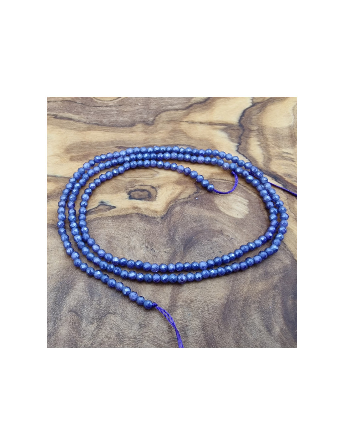 Sehr schöner, stark funkelnder lila Zirkoniastrang. Durch den Facettenschliff funkeln die Zirkoniasteine ähnlich stark wie dies auch bei Diamantketten der Fall ist. Die Steine sind als facettierte Perlen mit 2mm Durchmesser geschliffen und einzeln am Strang aufgefädelt. Die Kette hat noch keinen Verschluss. Der Strang ist ca.37cm lang. (Durch die Musterfotos kann es zu leichten farblichen Abweichungen kommen. Einschlüsse im Stein sind ein Zeichen der Natur). VPE = 1 Strang