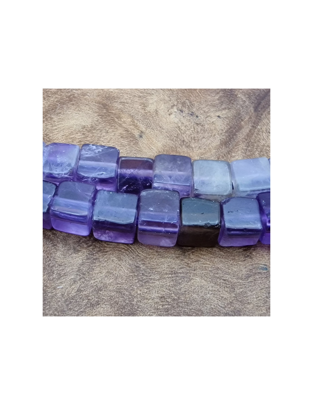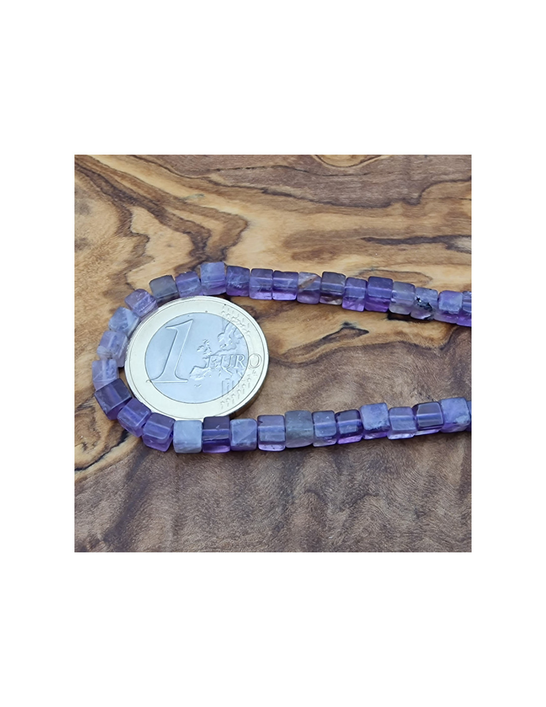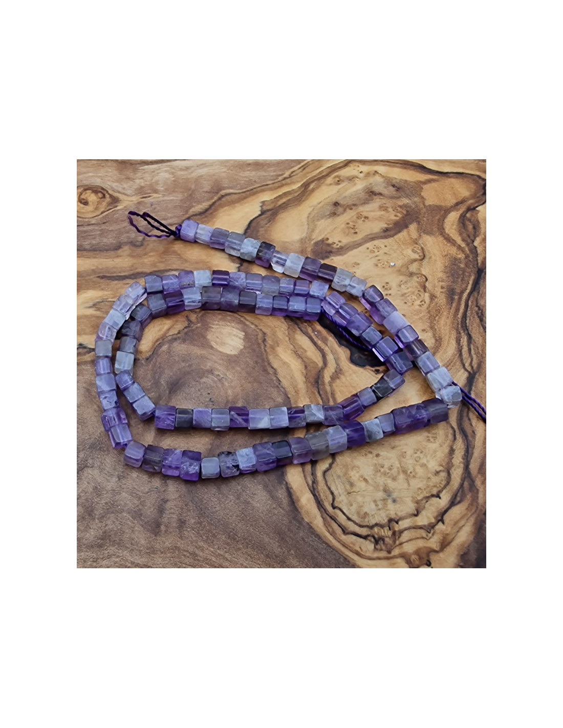 Schöner echter Amethysstrang. Die würfeligen Perlen haben eine Seitenlänge von ca.4mm und sind einzeln am Strang aufgefädelt. Die Kette hat noch keinen Verschluss. Der Strang ist ca.38cm lang. (Durch die Musterfotos kann es zu leichten farblichen Abweichungen kommen. Einschlüsse im Stein sind ein Zeichen der Natur). VPE = 1 Strang