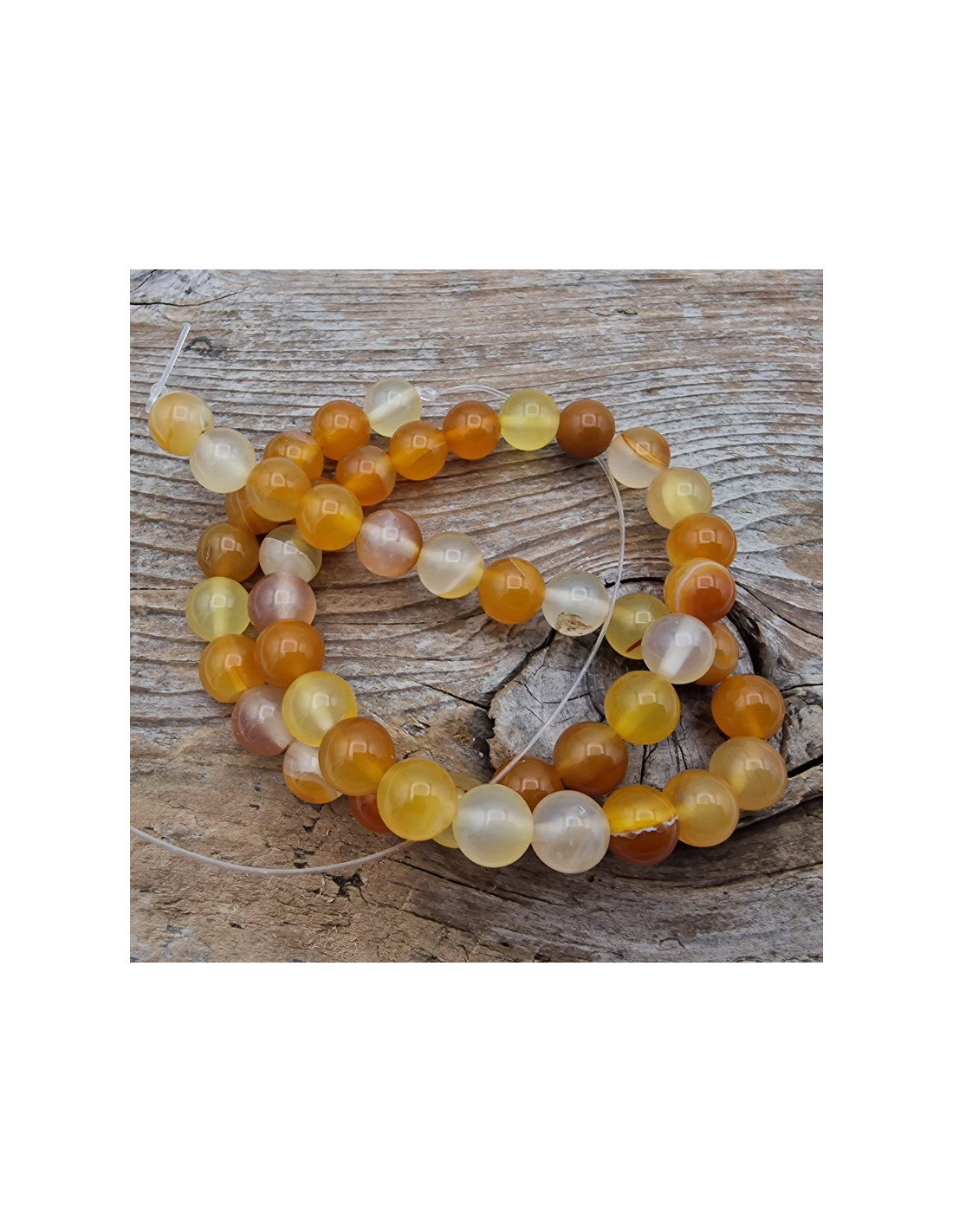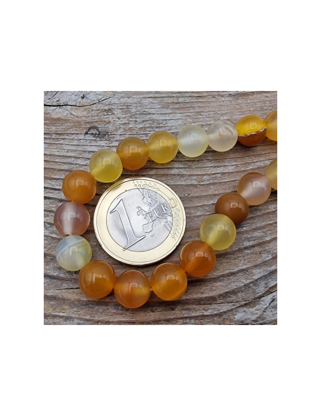 Schöner Achat-Carneolstrang in Naturfarben. Die Perlen haben einen Durchmesser von ca.8mm und sind einzeln am Strang aufgefädelt. Die Kette hat noch keinen Verschluss. Der Strang ist ca.38cm lang. (Durch die Musterfotos kann es zu leichten farblichen Abweichungen kommen. Einschlüsse im Stein sind ein Zeichen der Natur). VPE = 1 Strang