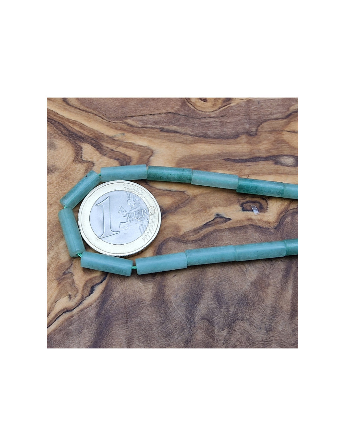 Schöner Aventurinstrang. Die zylinderförmigen Perlen haben einen Durchmesser von ca.4mm, eine Länge von ca.13mm und sind einzeln am Strang aufgefädelt. Die Kette hat noch keinen Verschluss. Der Strang ist ca.38cm lang. (Durch die Musterfotos kann es zu leichten farblichen Abweichungen kommen. Einschlüsse im Stein sind ein Zeichen der Natur). VPE = 1 Strang